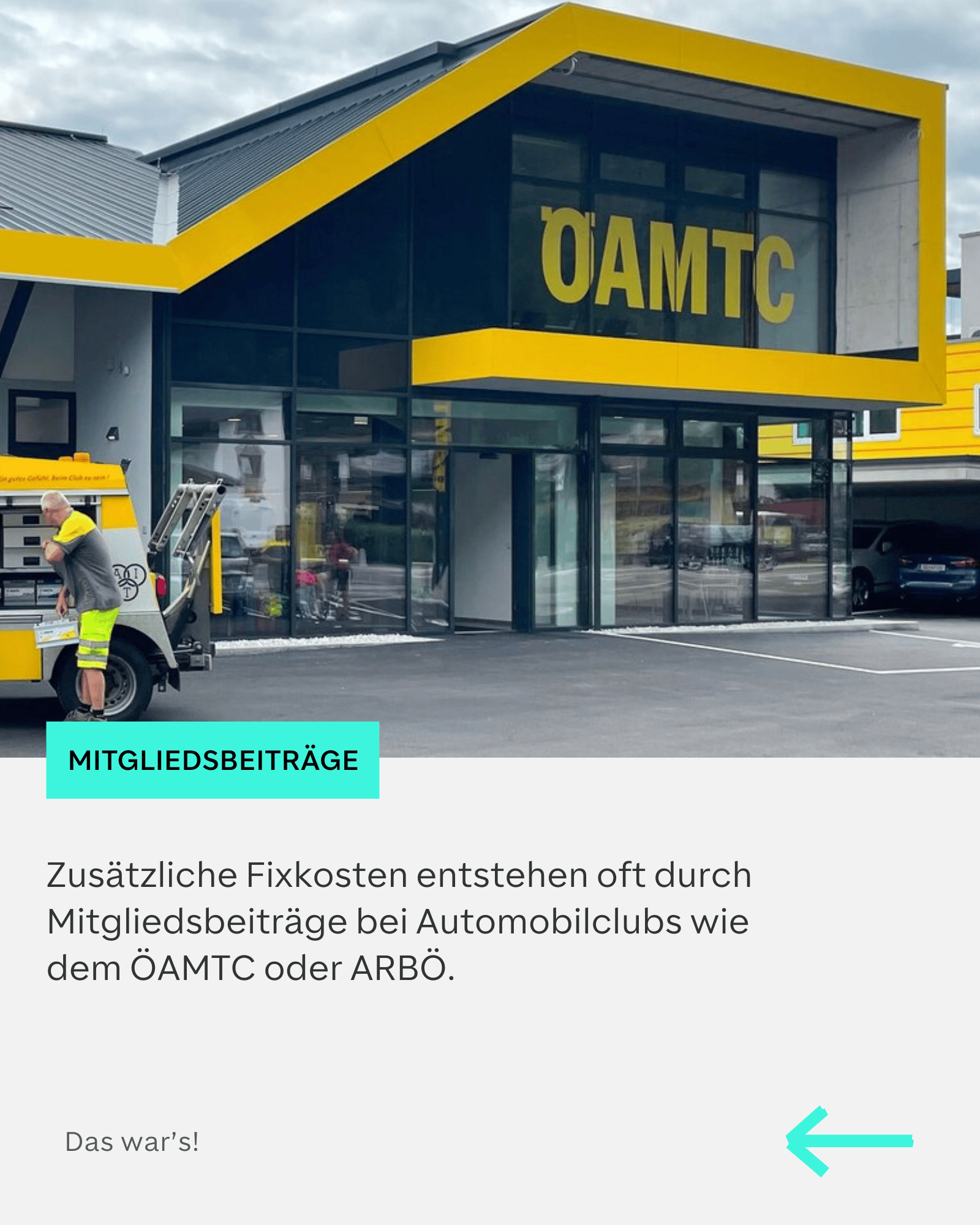 • Fixkosten (Versicherung, Steuer, Parken) fallen unabhängig von der Nutzung an.