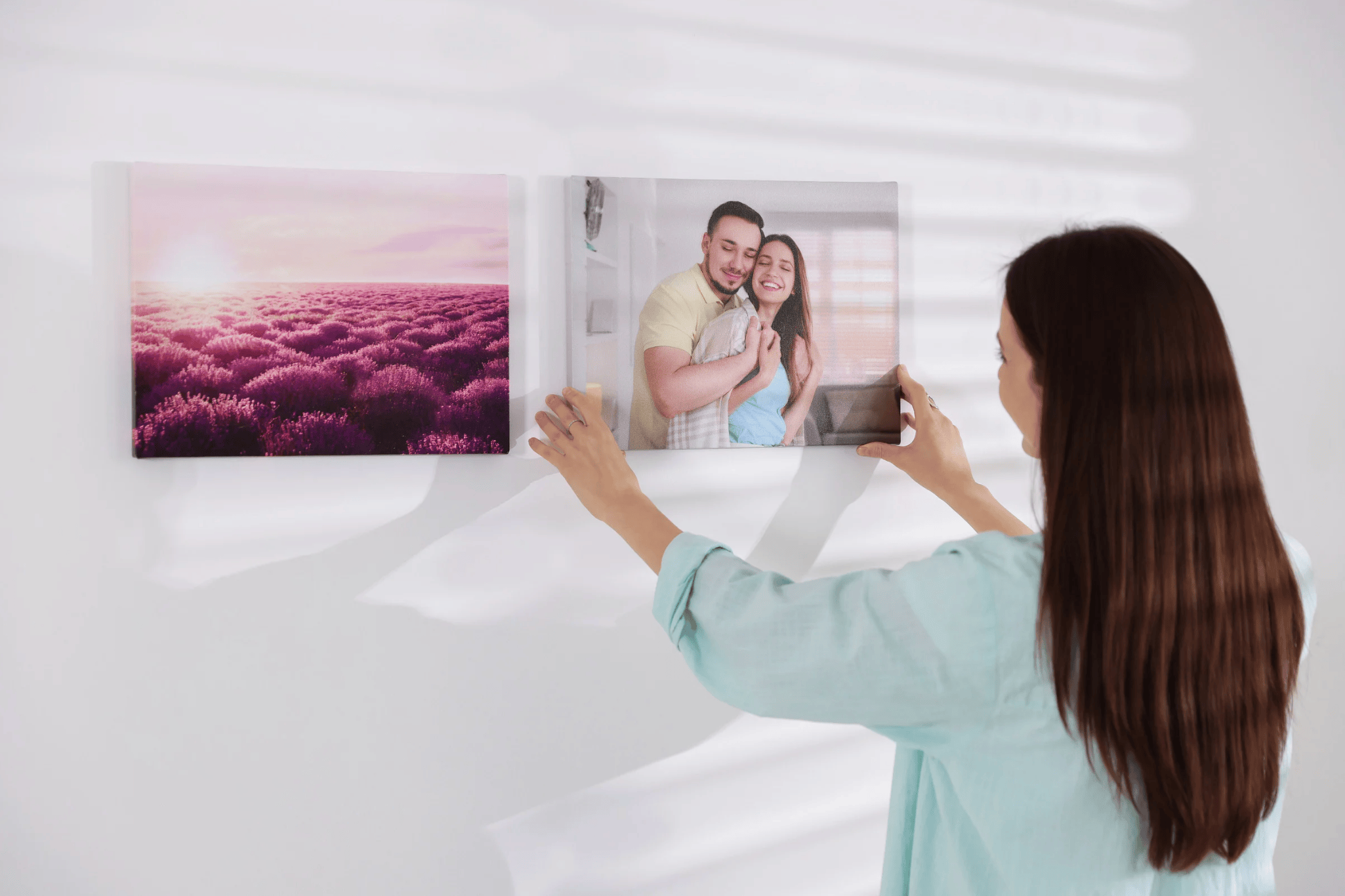 - Bodenprobe: Lege alle gerahmten Bilder auf dem Boden vor der entsprechenden Wand aus.